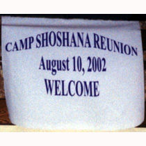 We had a ball at the Camp Shoshana Reunion held on August 10, 2002. In attendance were campers and staff from every decade that camp was open, the growing families of campers and staff, and the parents of some campers and staff too. Sue had her whistle, we all had cameras, and the fun ensued. Andrew ran the slide show while Ellen named the names. Ira Presser and Karen Weissman presented vintage film clips on DVD. Jyll demonstrated her photo CD-ROM made up of scans of every group photo in Sue's archive (order yours from her by e-mail jyllk@powerlist.com.) The afternoon was chock full of hugs and kisses, eating and drinking, shouting and singing, splashing and giggling. Everyone looks fabulous and exactly the same as they had back then if not better. So there!